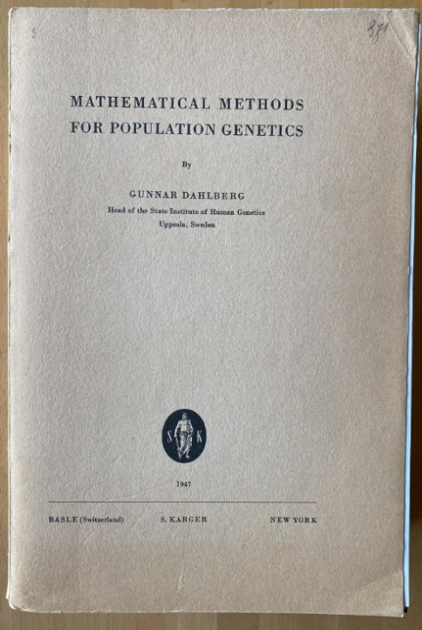 Mathematical Methods For Population Genetics By Gunnar Dahlberg Head Of The State Institute Of Human Genetics Uppsala Sweden 1947 Basle (Switzerland) S. Karger New York