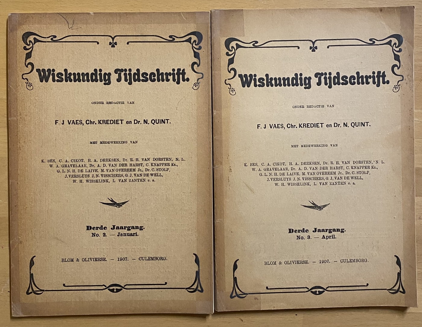 Twee delen Het doorlopen van bochten door motorwagens Het mechanisch equivalent der warmte in de school Het invoeren van wortels en oneindig groote waarden Methode van Descartes Vraagstukken