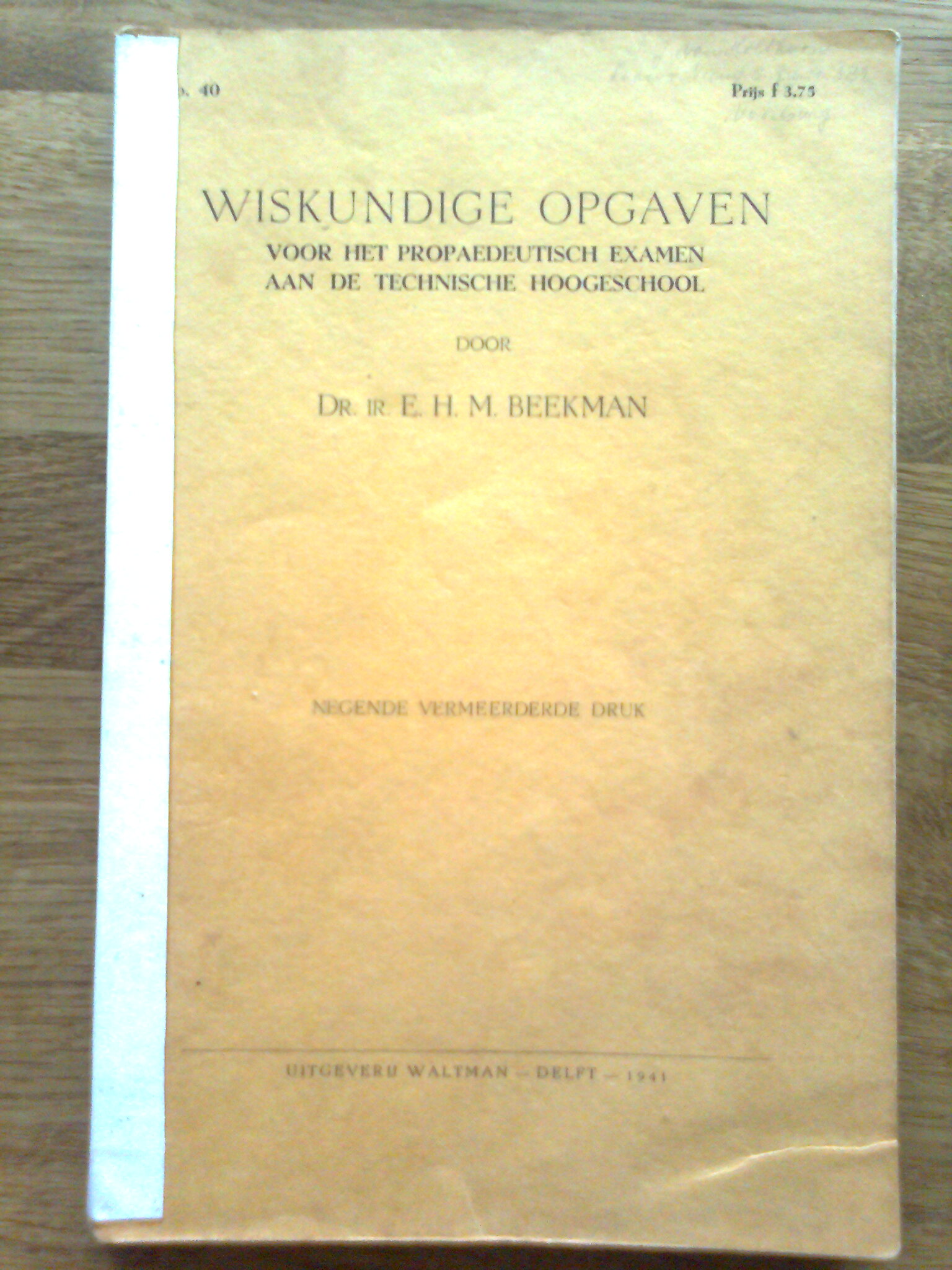 Wiskundige Opgaven voor het Propaedeutisch Examen aan de Technische Hoogeschool